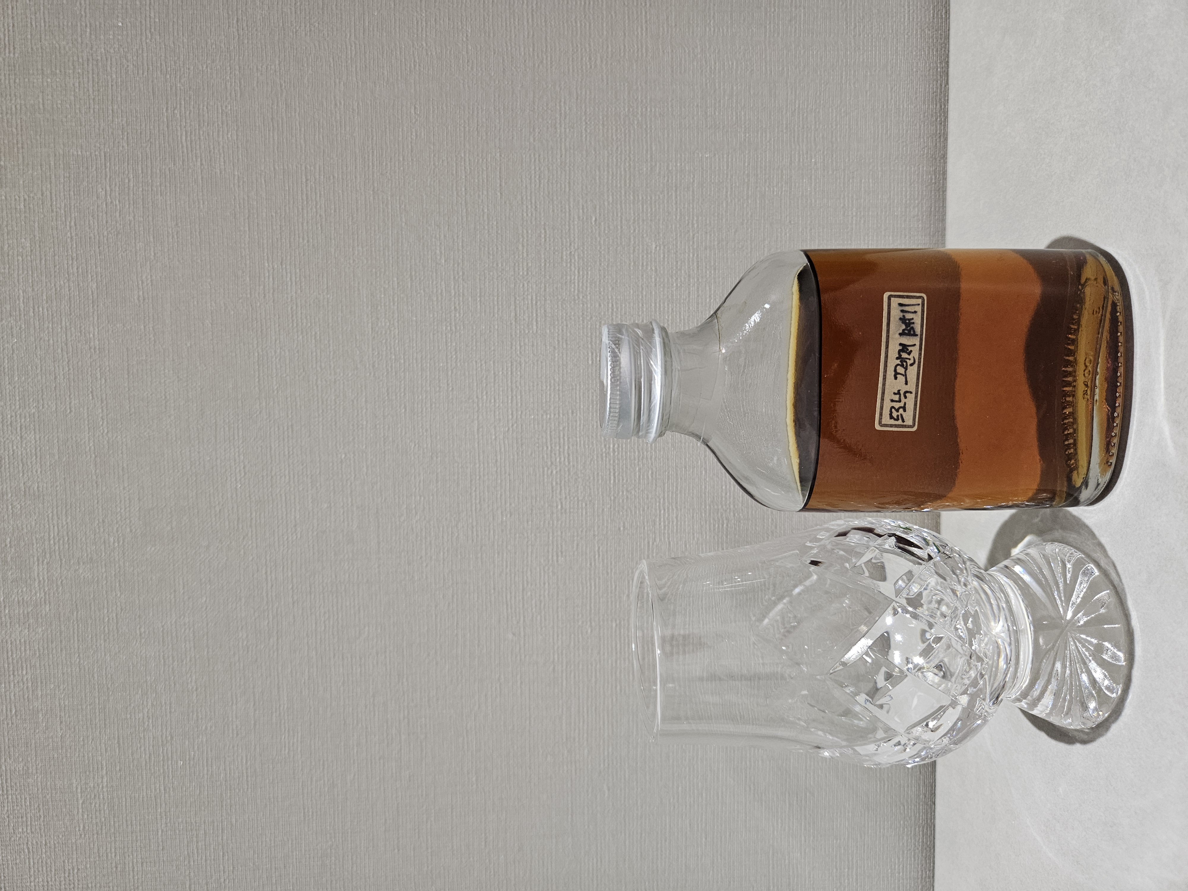이번 시음에서는 크리스탈 재질의 잔을 사용하다 보니, 내부 굴절로 인해 레그(legs) 형성이 명확하게 보이지 않는 아쉬움이 있었거든요. 점도의 흐름과 잔 벽을 타고 천천히 내려오는 레그의 패턴은 위스키의 점도와 숙성도를 가늠할 수 있는 중요한 요소이기에, 다음에는 보다 관찰이 용이한 표준 글렌캐런 잔을 통해 더욱 정밀하게 기록해보고자 합니다.