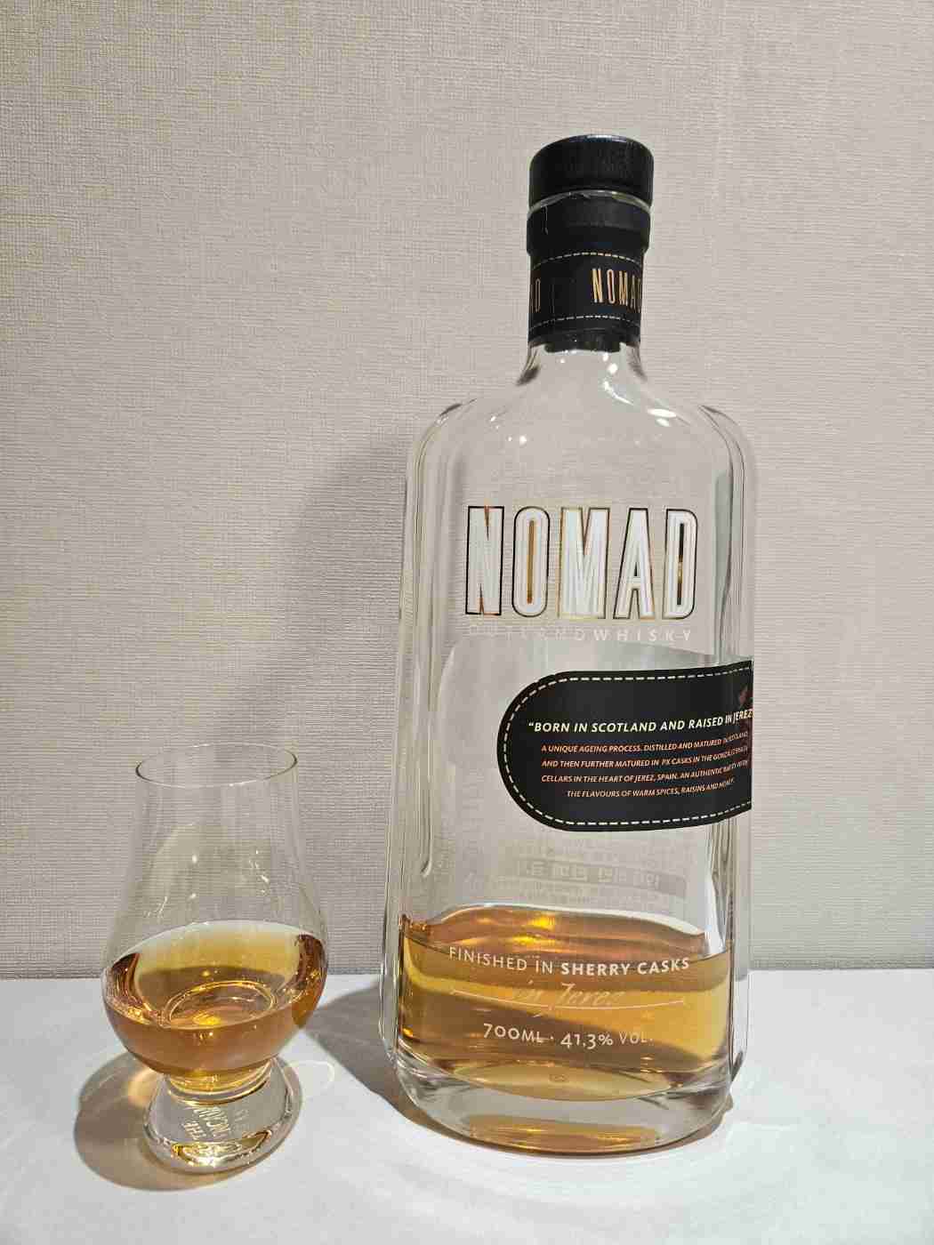 일반으로 스카치위스키라고 하면 스코틀랜드에서 제조를 해야만 스카치위스키로 불릴 수 있는데, 노마드는 스코틀랜드에서 태어나 스페인에서 숙성된 위스키이기 때문에 스카치위스키라고 이름을 붙일 수 없다.