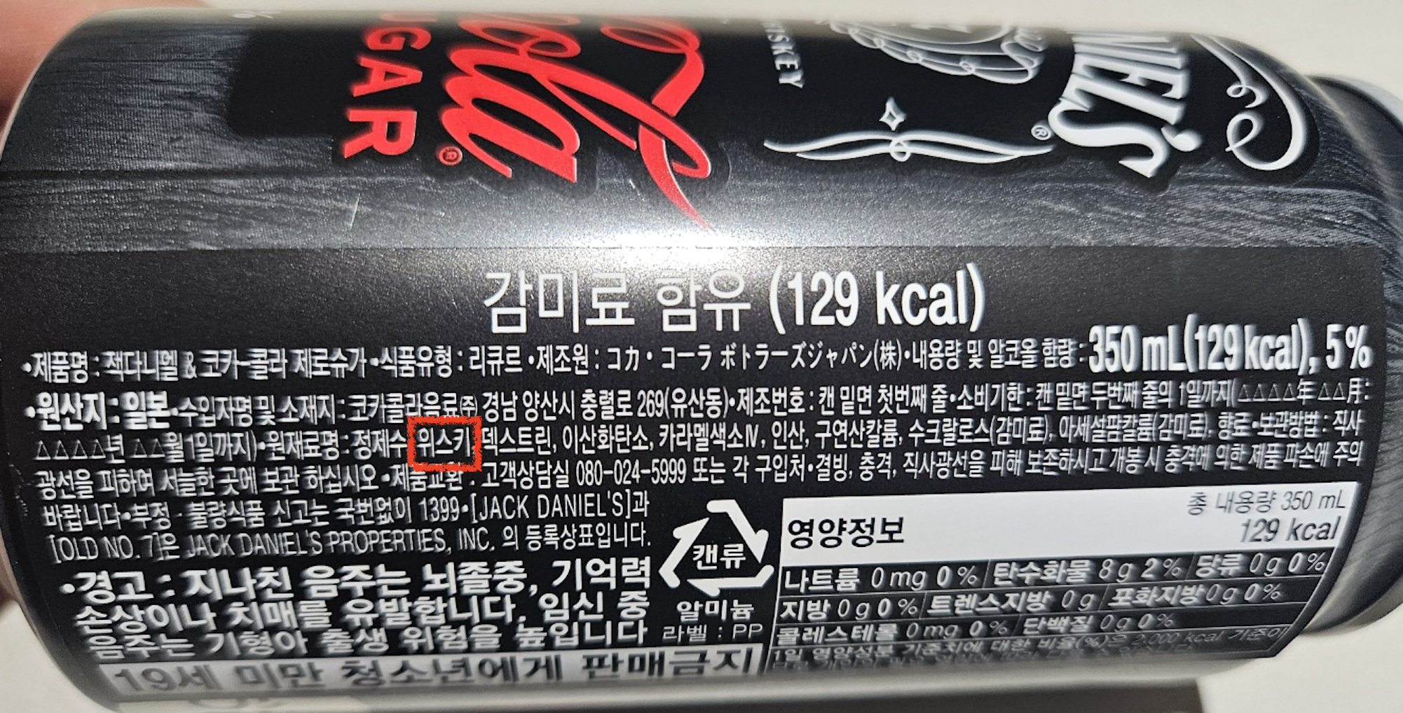 - 품명 : 코카콜라 잭다니엘 잭콕 제로슈가( Coca Cola Jack Daniel's - ZERO SUGAR )