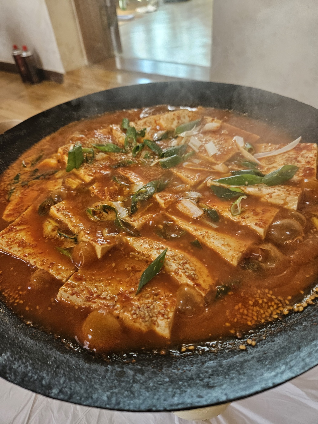 메인 요리인 두부지짐이를 4인분 시켰다. 처음 지짐이에 있는 두부를 먹는 순간 살짝의 고민이 생겼었다. 아.. 이거 두부구이도 시켰어야 했는데 차라리 지짐이 2개 두부구이 2개 시킬걸...이라는 생각이 바로 들었다. 그 정도로 양념뿐만 아니라 두부의 간이 정말 잘 배어있는 것을 알 수 있었다.  다음번에는 반드시 두부구이를 한번 먹어봐야 할 거 같다. 개인적으로 재방문하게 된다면 두부구이 2인 + 두부전골 2인 or 두부지짐이 2인으로 주문하는 것이 가장 베스트라고 생각된다. 재방문 의사 100프로인 집이고 만약 누군가가 홍천에 맛집을 추천해달라고 한다면 무조건 추천해줄것같다. 개인적으로는 두부요리를 너무 좋아하여 인제,고성,속초 등등 두부로 유명한곳을 다니곤 했는데,  전국적으로 두부 맛집투어를 하는것이 목표이다.