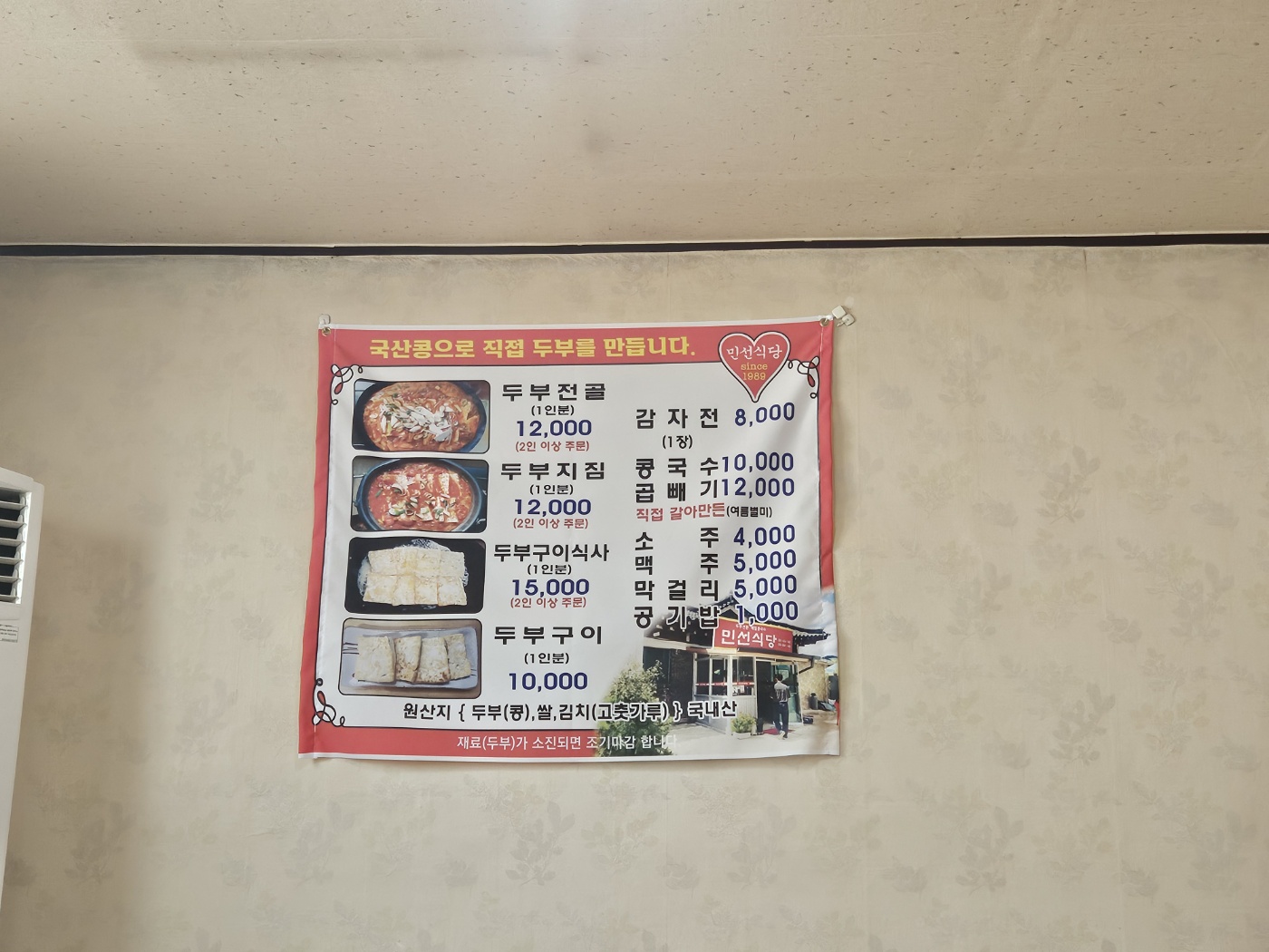 홍천 맛집 민선식당 메뉴판