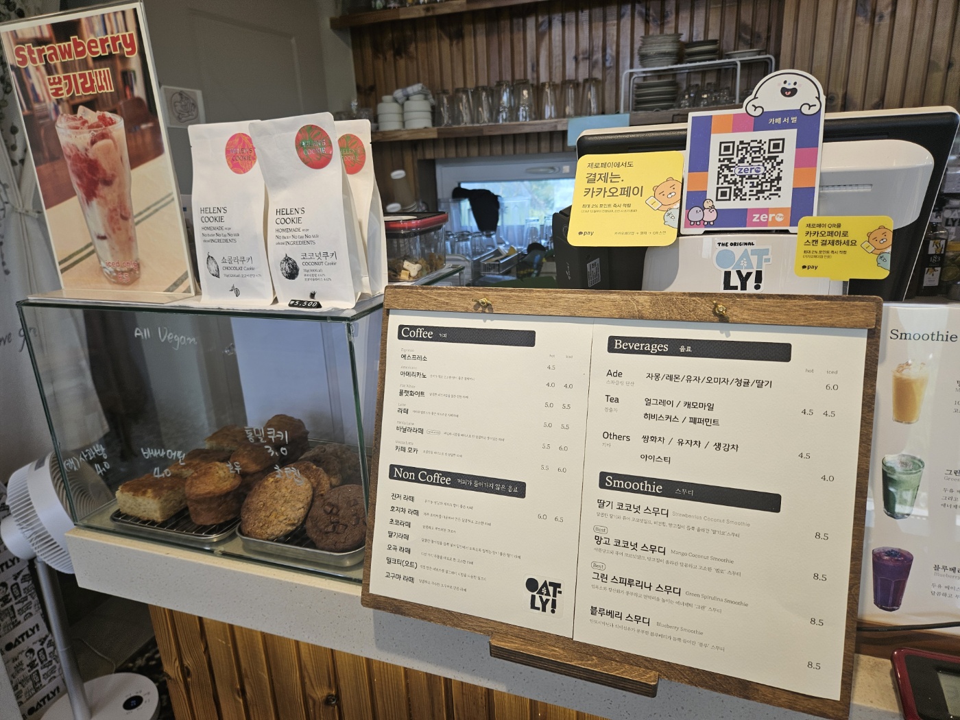 비건 카페이며 식물성 음료를 제공하는 곳이라서 그런지 사장님의 섬세함과 자극적이지 않은 음료에서 오는 속의 편안함을 느낄 수 있었던 카페였습니다. 개인적으로는 비건카페인데 빵을 못먹어보고 온게 아쉽다라는 생각이 들어서 다음 방문때에는 커피에 빵을 하나 주문하여 먹어봐야할 것 같습니다! 재방문 의사 100프로입니다!