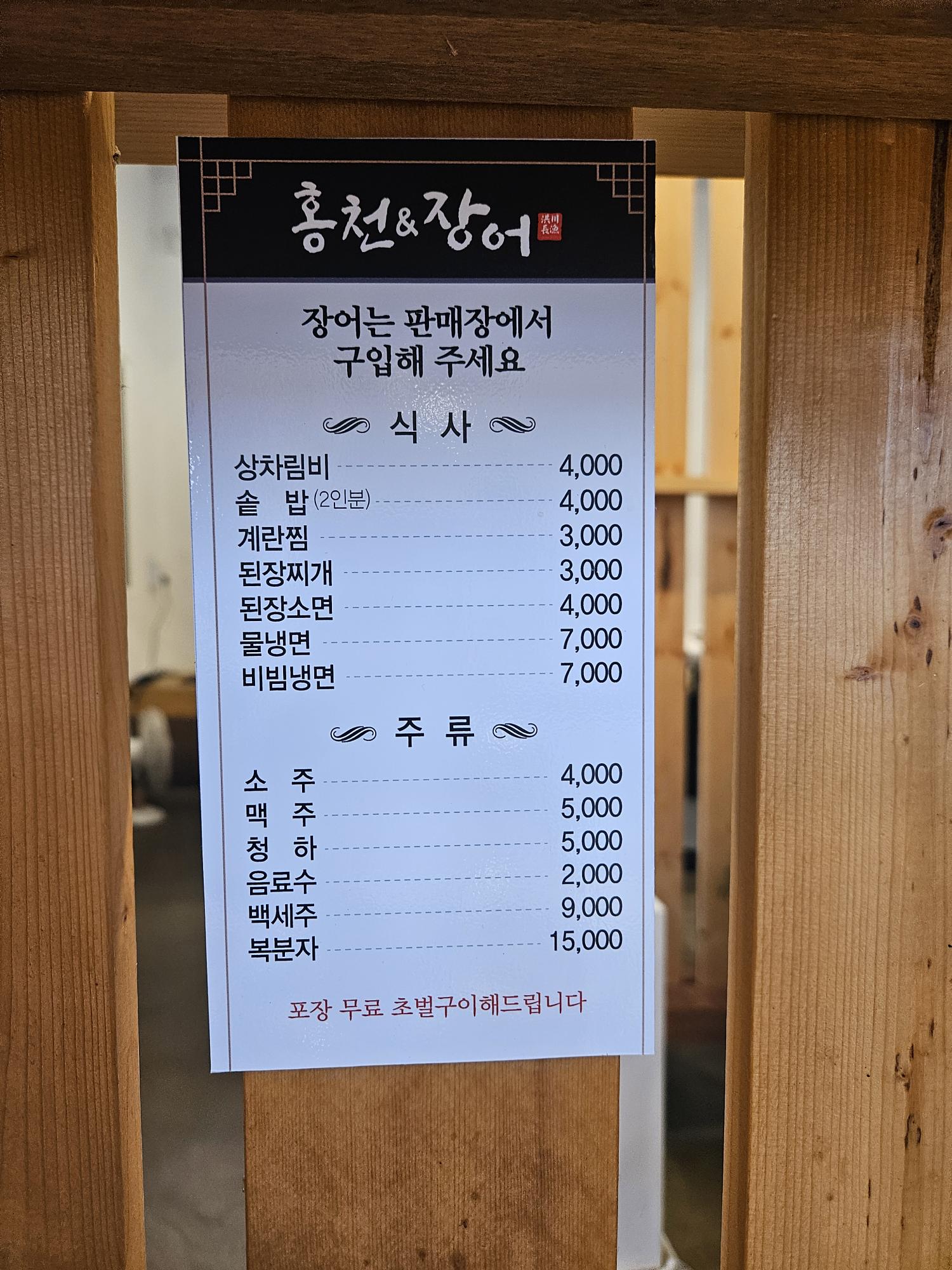 홍천장어 메뉴판