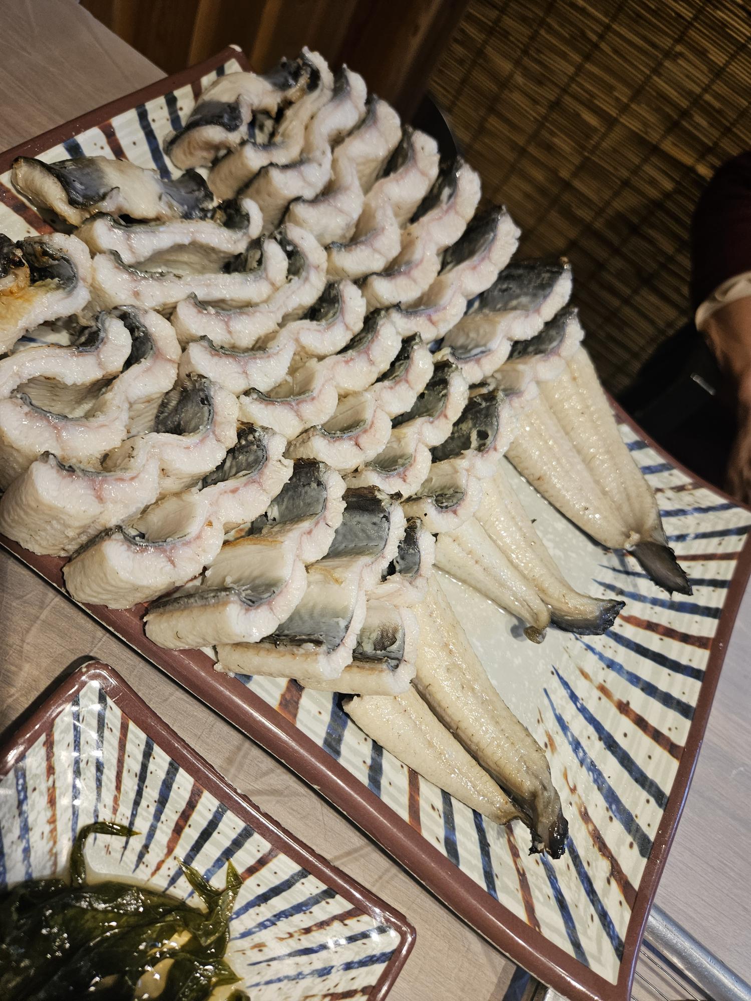 초벌이 완료된 장어 약 900g 가 나온 모습입니다. 사진으로만 다시 봐도 군침이 도네요. 900g짜리 1팩으로 3명이서 술먹으면서 밥먹고하면 충분한 양이였습니다. 3명이서 먹으면 꼬리가 3개이기 때문에 아주 깔끔하게 먹을 수 있죠.