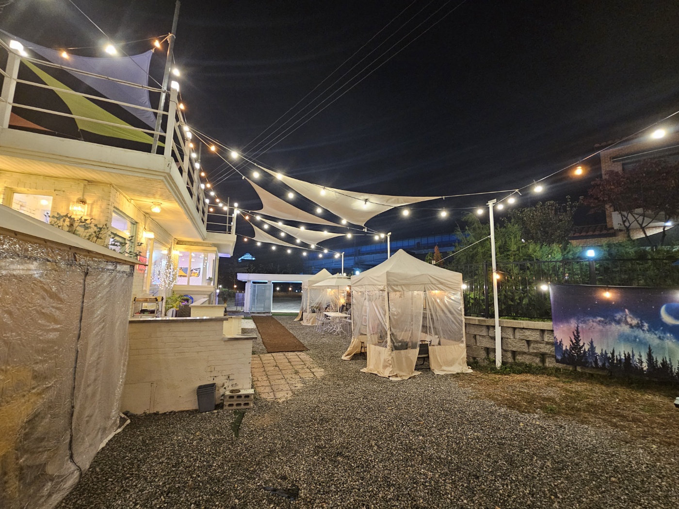맛있게 치킨을 먹고 나온 뒤에 하우스에서 나오자마자 입구를 바라보고 찍은 모습입니다. 정말 맛에 한번 취하고 분위기에 두 번 취하는 그런 곳이었습니다. 춘천 페리카나 국사봉점이 생긴 덕분에 오랜만에 야외에서 분위기 있고 정감 있게 도란도란 이야기하며 저녁을 먹을 수 있는 하루가 되어 정말 행복했습니다. 지금 이 글을 쓰는 순간에도 저때의 분위기가 바로 생각날 정도로 완전 좋았습니다.