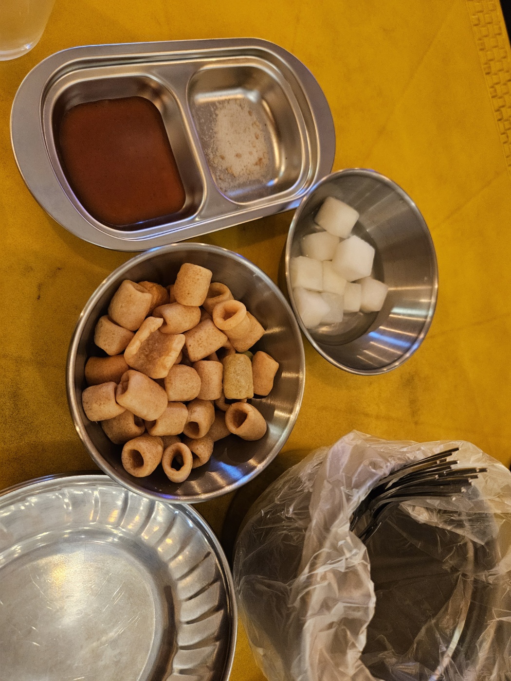 춘천 페리카나 국사봉점에서는 기본안주로 치킨무와 과자를 제공해 줍니다. 안주로 치킨을 시켜서 그런 건지 모르겠지만 양념과 소금까지 같이 제공해 주셨습니다. 치킨무를 통틀어서 모든 기본 안주는 셀프로 무한 리필이 가능해 보였습니다. 실제로 저도 치킨이 나오기 전까지 리필해 먹으면서 배고픔을 달래주었습니다!