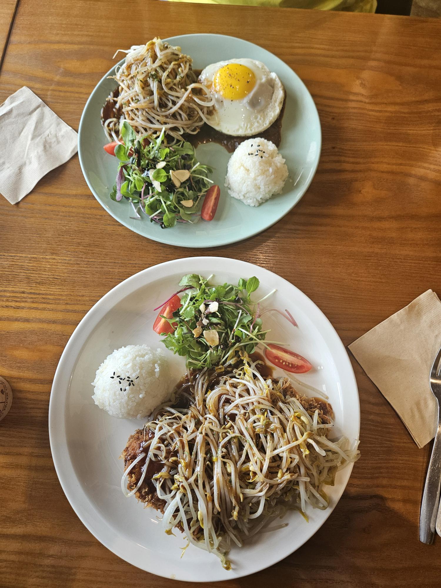 주문하고 얼마 지나지 않아 로봇이 빠르게 서빙해 준 돈가스! 숙주나물이 충분하게 올라간 돈가스는 정말 특별했습니다. 바삭한 돈가스와 신선한 숙주나물의 조화가 생각보다 훨씬 맛있습니다. 숙주의 아삭한 식감과 상큼한 맛이 고소한 돈가스와 어우러져 맛의 깊이를 더해주었습니다. 일반적인 돈가스와는 또 다른 매력이 있어 먹는 재미가 두 배로 느껴졌습니다.