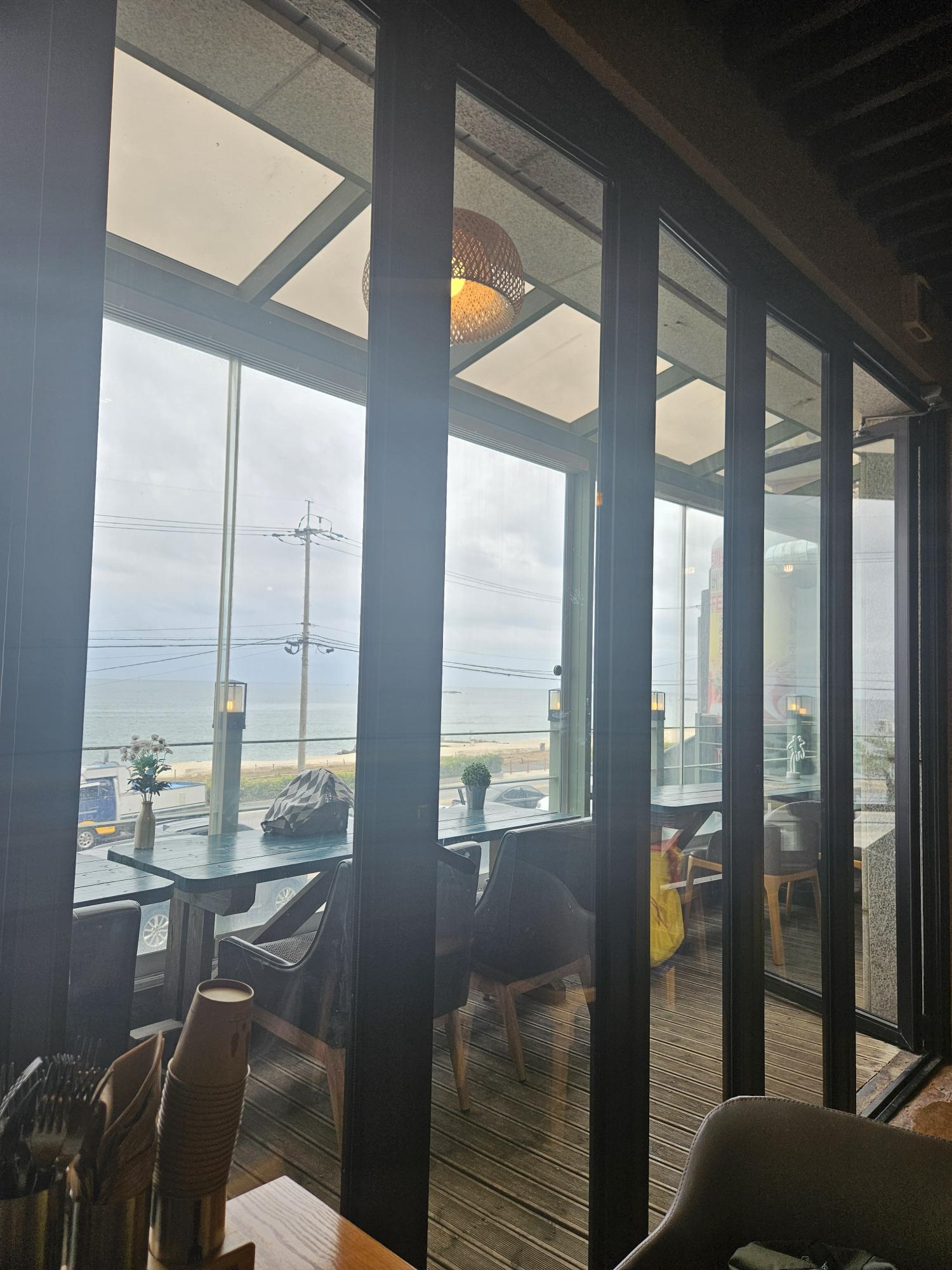 사근진 해변 근처에 있는 맛집이라 해변을 보며 식사를 할 수 있는 자리도 마련되어 있습니다. 뿐만 아니라 베란다 쪽에 2명씩 세팅이 되어있는 해변을 볼 수 있는 자리는 특히 커플들에게 더없이 완벽한 자리입니다. 파도 소리를 들으며 여유로운 시간을 보낼 수 있는 특별한 공간이죠. 이 자리는 둘만의 소중한 순간을 더욱 추억으로 기억할 수 있게 만들어줄 것입니다. 다만 추워진 날씨 탓인지 베란다 쪽이 완전히 개방되어있지 않고 비닐로 막혀 있었습니다.