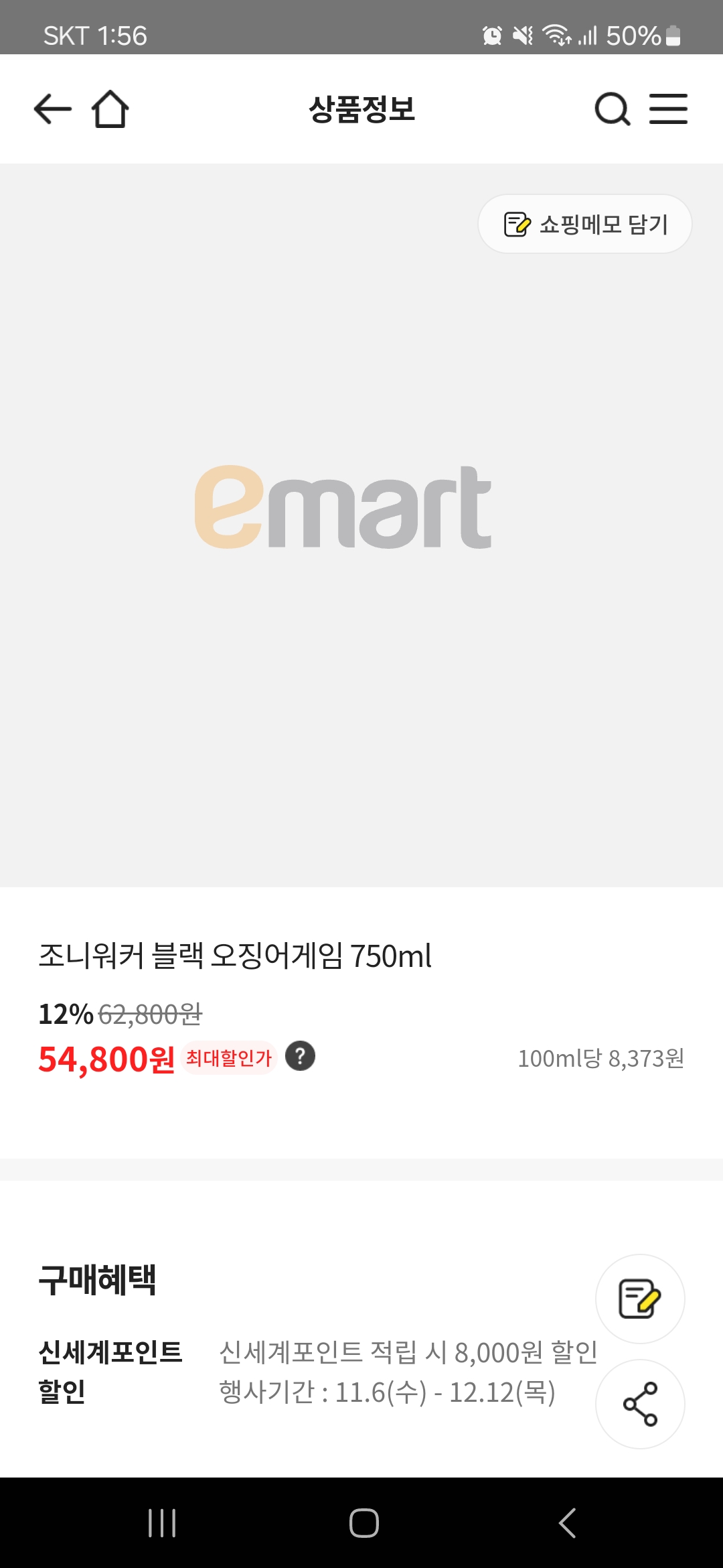 대형마트 중 이마트에서는 54,800원에 판매되고 있는 것을 확인할 수 있었습니다.