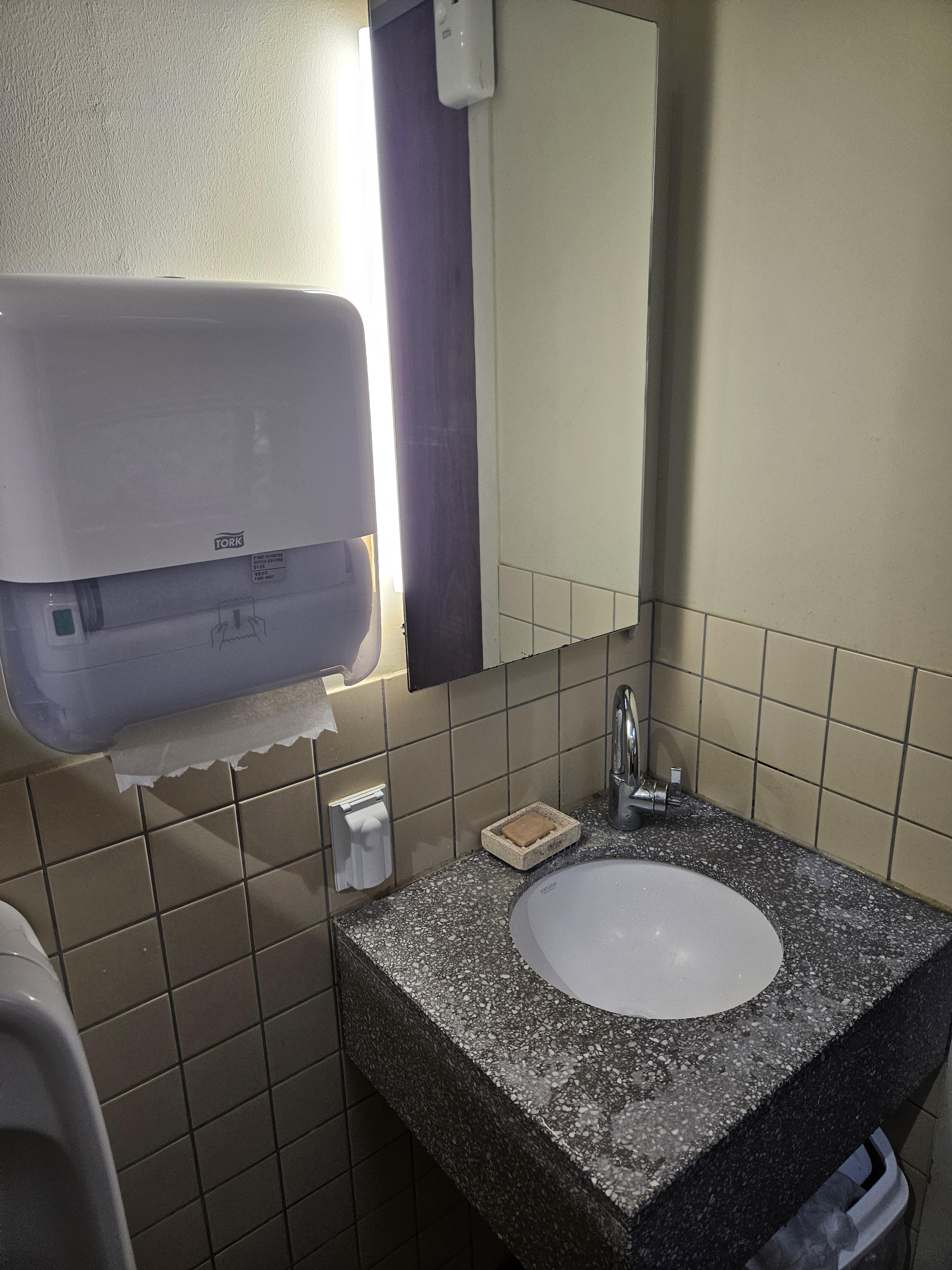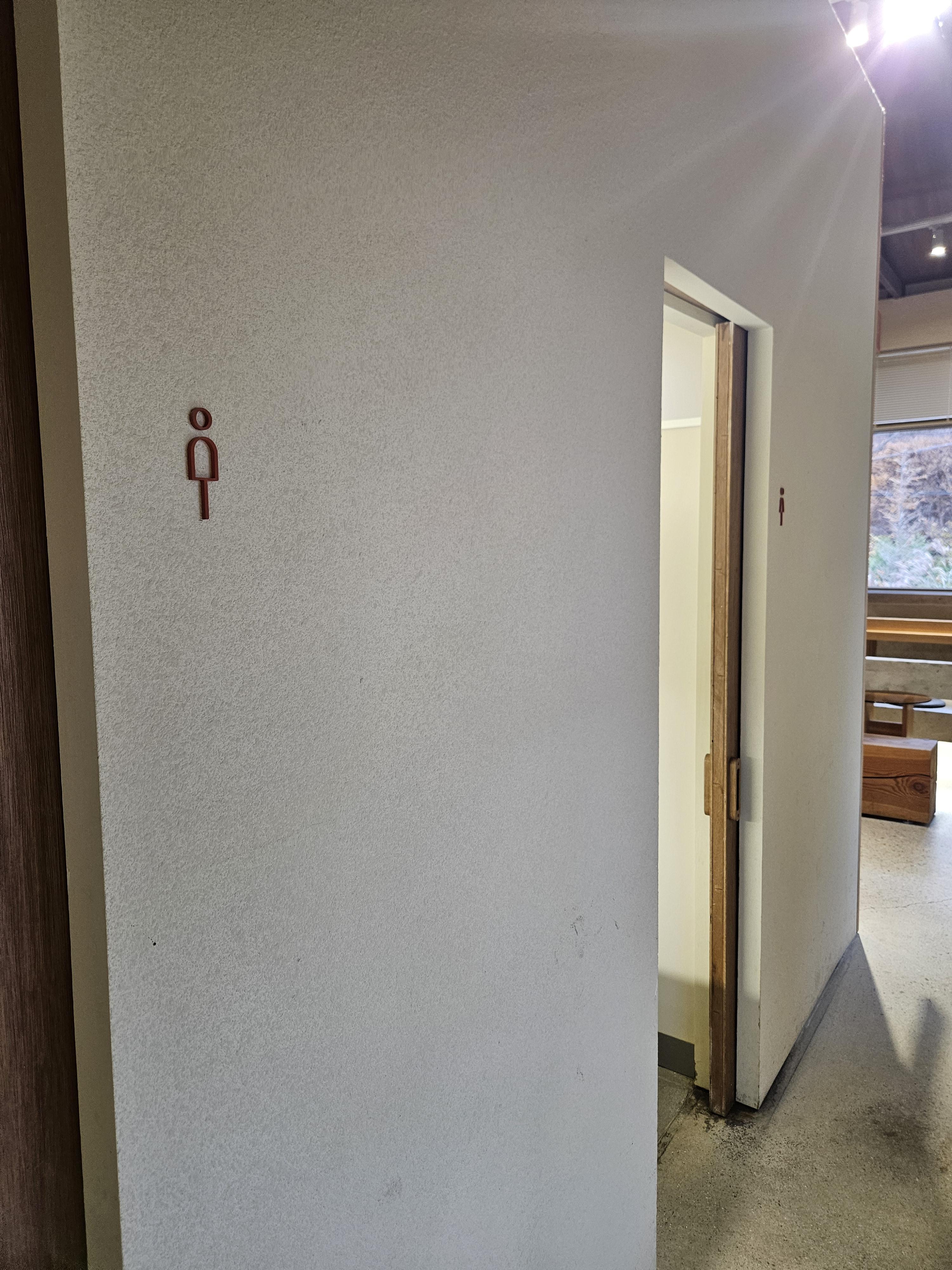 춘천 카페 오월학교의 화장실입니다. 원래 학교에서처럼 남녀가 따로 구분되어 있으며, 깔끔하게 관리되고 있어 기분 좋게 이용할 수 있었습니다. 세심하게 신경 쓴 관리 상태가 이곳의 정돈된 분위기를 더욱 돋보이게 했습니다.