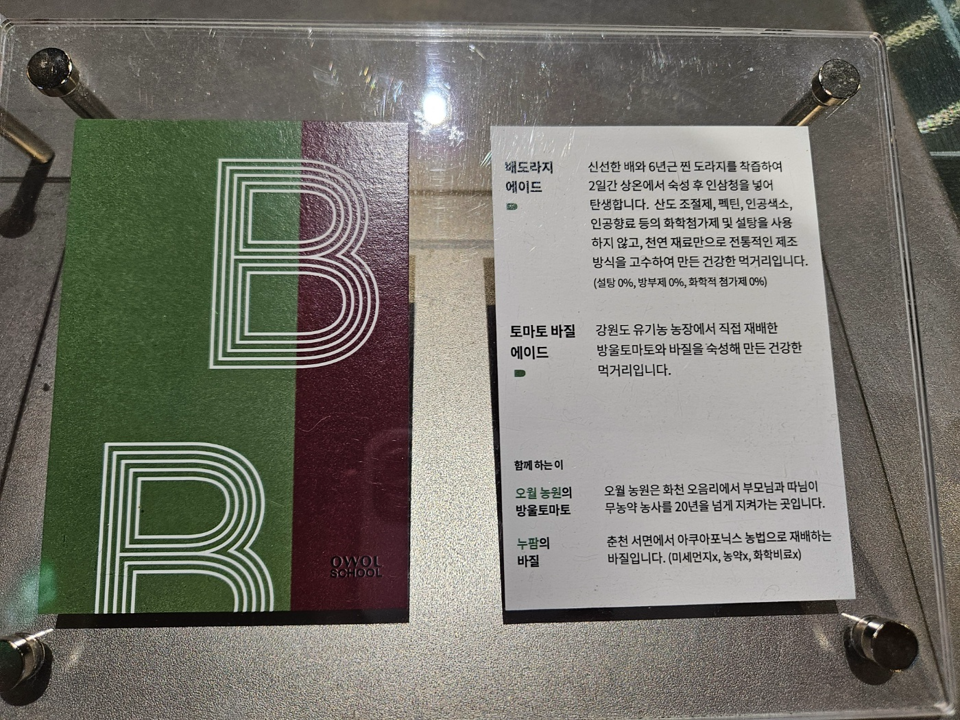 춘천 카페 오월학교에서는 원두를 두 가지 종류로 구분하여 판매하고 있었습니다. 오월학교 원두는 Kgml과 함께 만든 블렌드로, 이곳에서만 즐길 수 있는 특별한 원두라고 합니다.