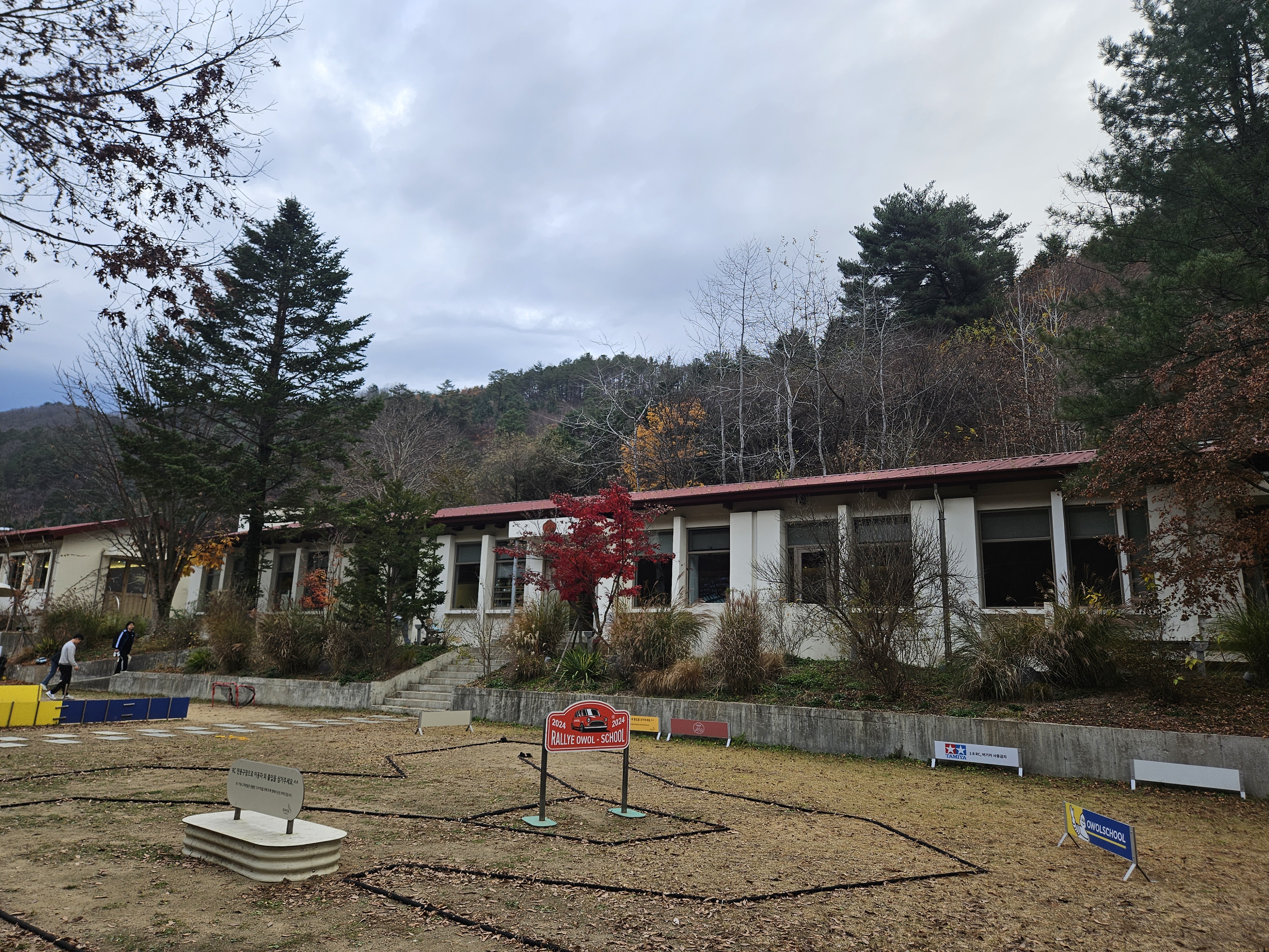운동장에는 RC카를 운전할 수 있는 트랙과 간단히 공놀이를 할 수 있는 공간이 마련되어 있어, 아이들과 함께 방문한다면 뛰어놀기에 제격인 환경이었습니다. 폐교되기 전 이곳에서 뛰놀던 학생들이 떠오를 법한, 묘한 감정과 추억이 어우러지는 특별한 공간이었습니다.