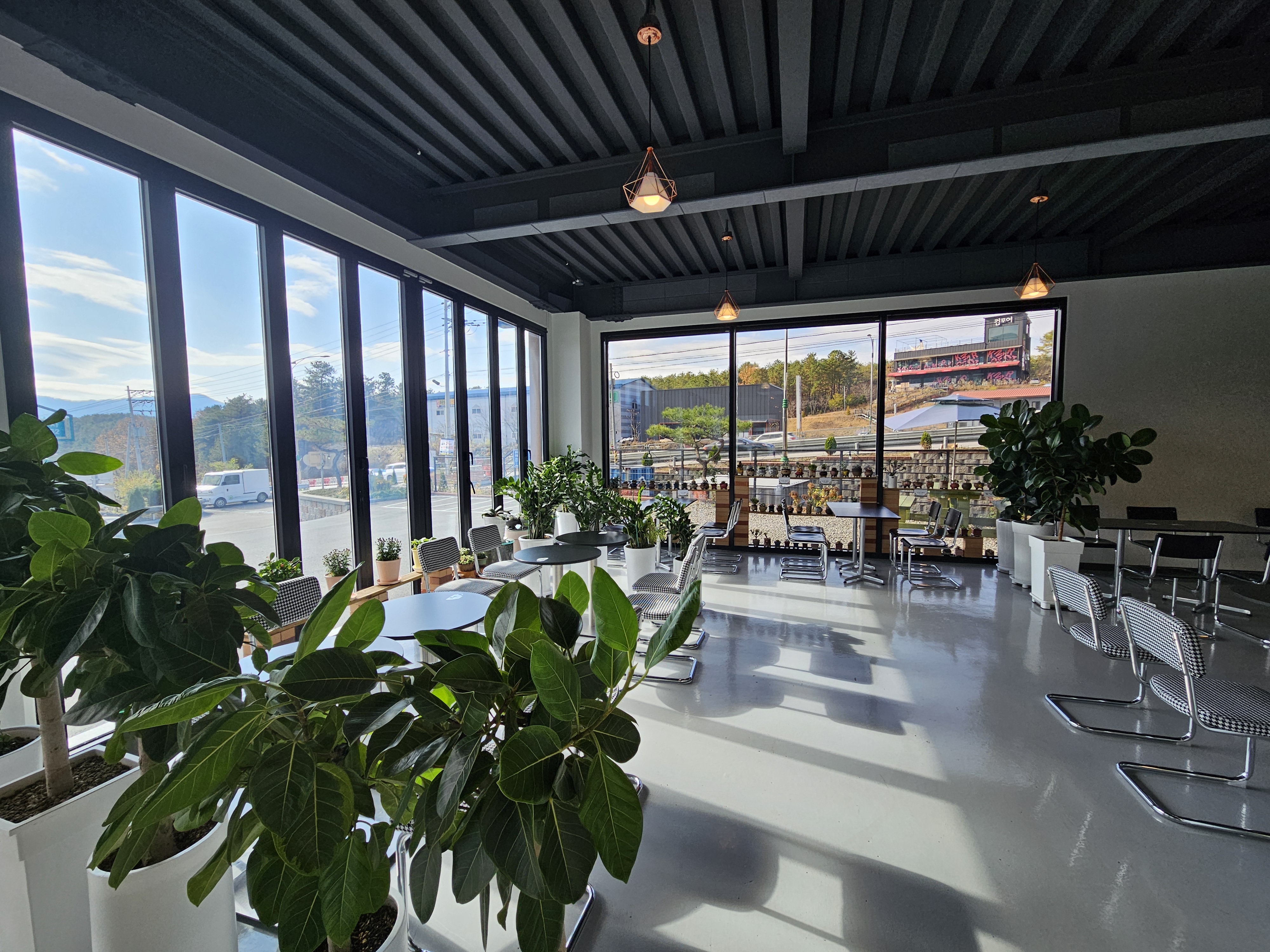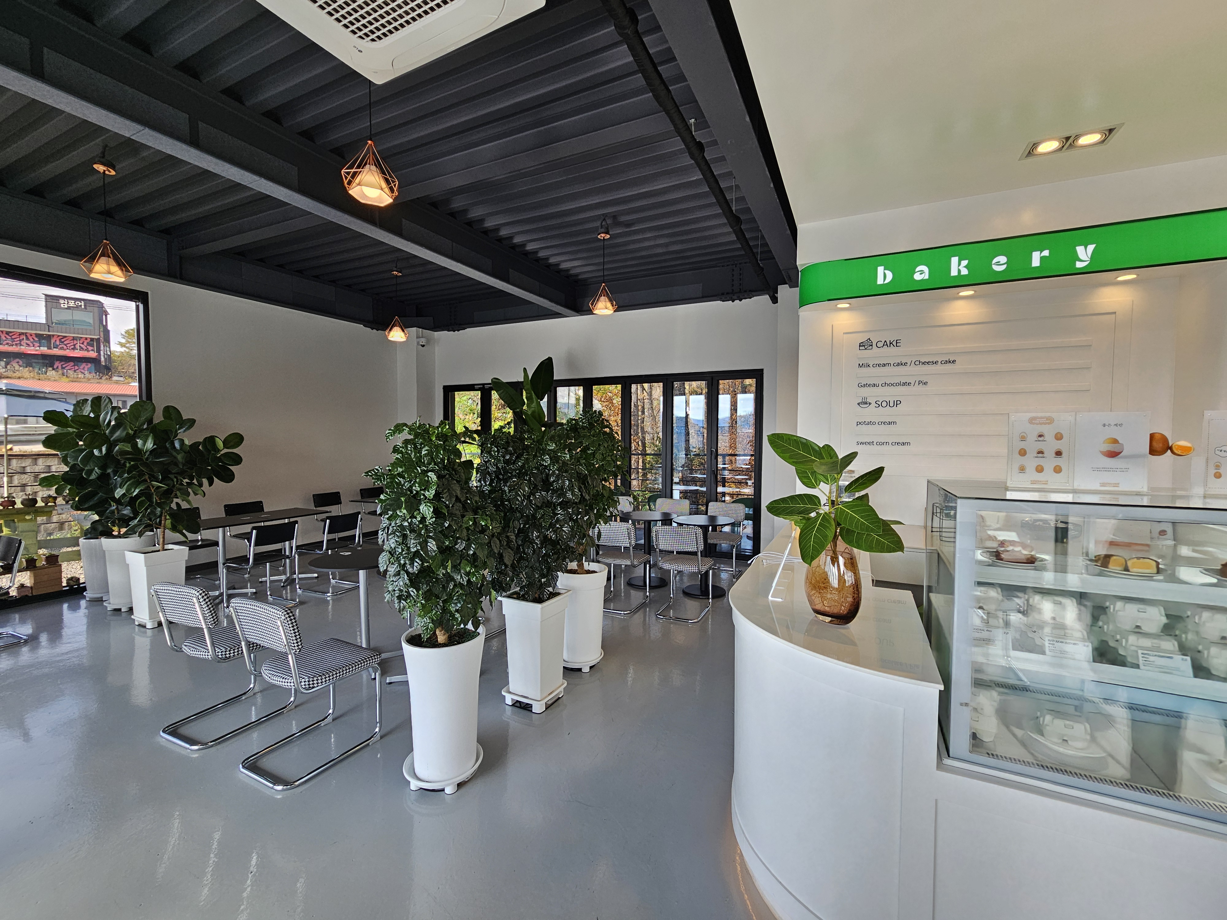 특히 넓은 창가로 들어오는 따스한 햇살과 실내를 감싸는 녹색의 조화는 마치 자연 속에 있는 듯한 평온함을 선사했습니다. 깔끔하고 차분한 분위기가 매력적이었으며, 여유롭게 시간을 보내기에 딱 알맞은 공간이었습니다. 이곳에서 커피 한 잔과 함께라면 마음까지 치유되는 느낌을 받을 수 있을 것 같았습니다.