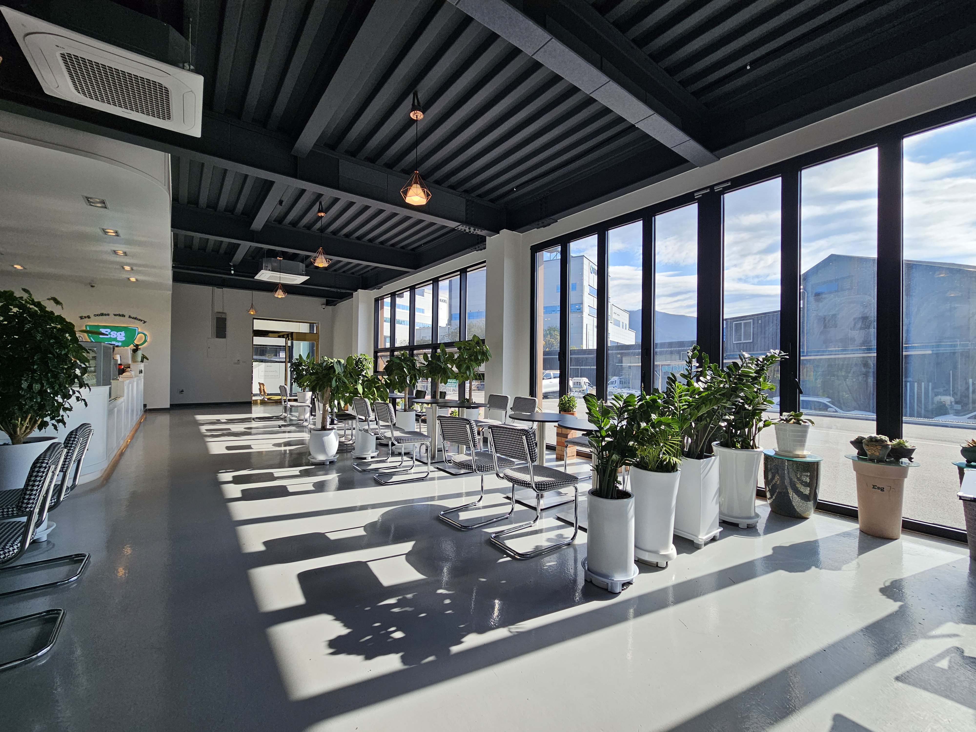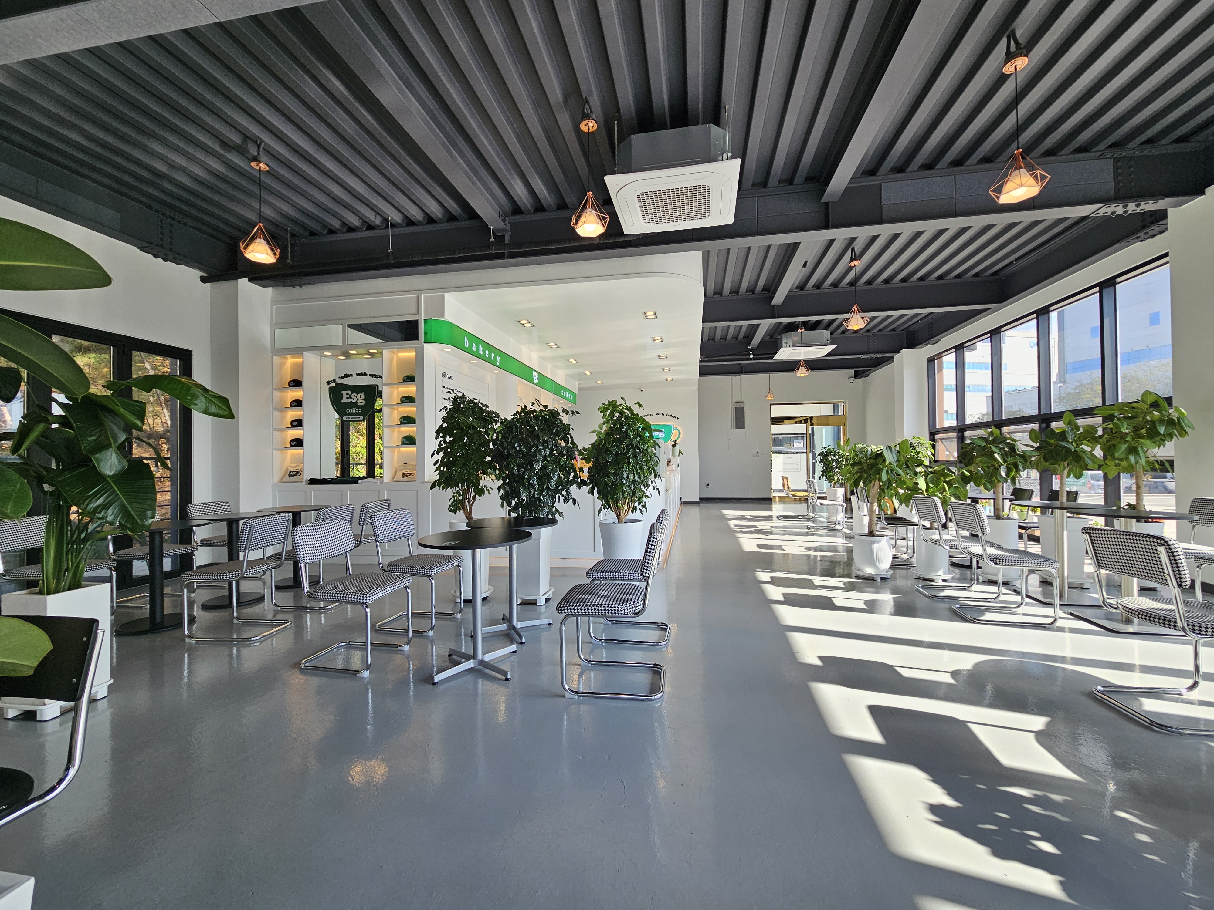 춘천 카페 ESG 커피의 내부는 매우 넓고 쾌적한 공간으로, 들어서는 순간부터 따뜻하고 편안한 분위기를 느낄 수 있었으며, ESG의 의미를 반영한 듯한 자연 친화적인 인테리어와 ESG를 상징하는 녹색 색감이 곳곳에 배치되어 있었습니다.