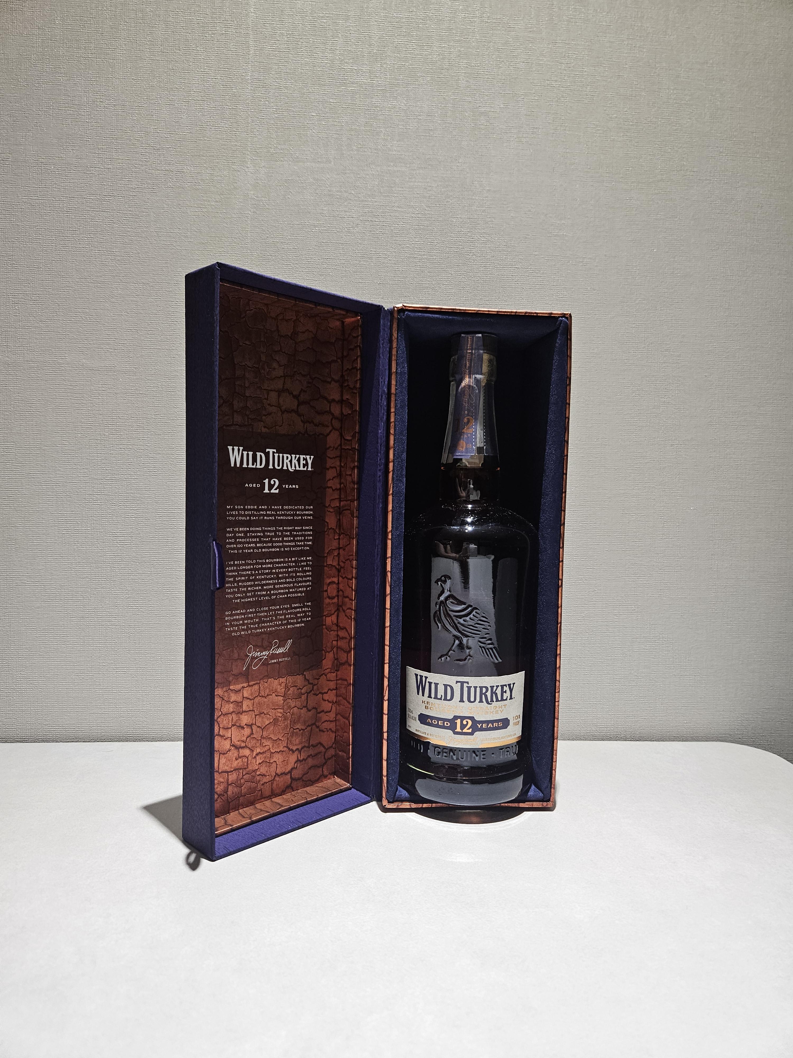 와일드 터키 12년은 이러한 점에서 오랜 숙성과 풍미의 깊이를 담아낸 특별한 위스키로, 케이스부터 내용물까지 버번 애호가들에게 충분한 만족감을 선사하는 제품입니다.